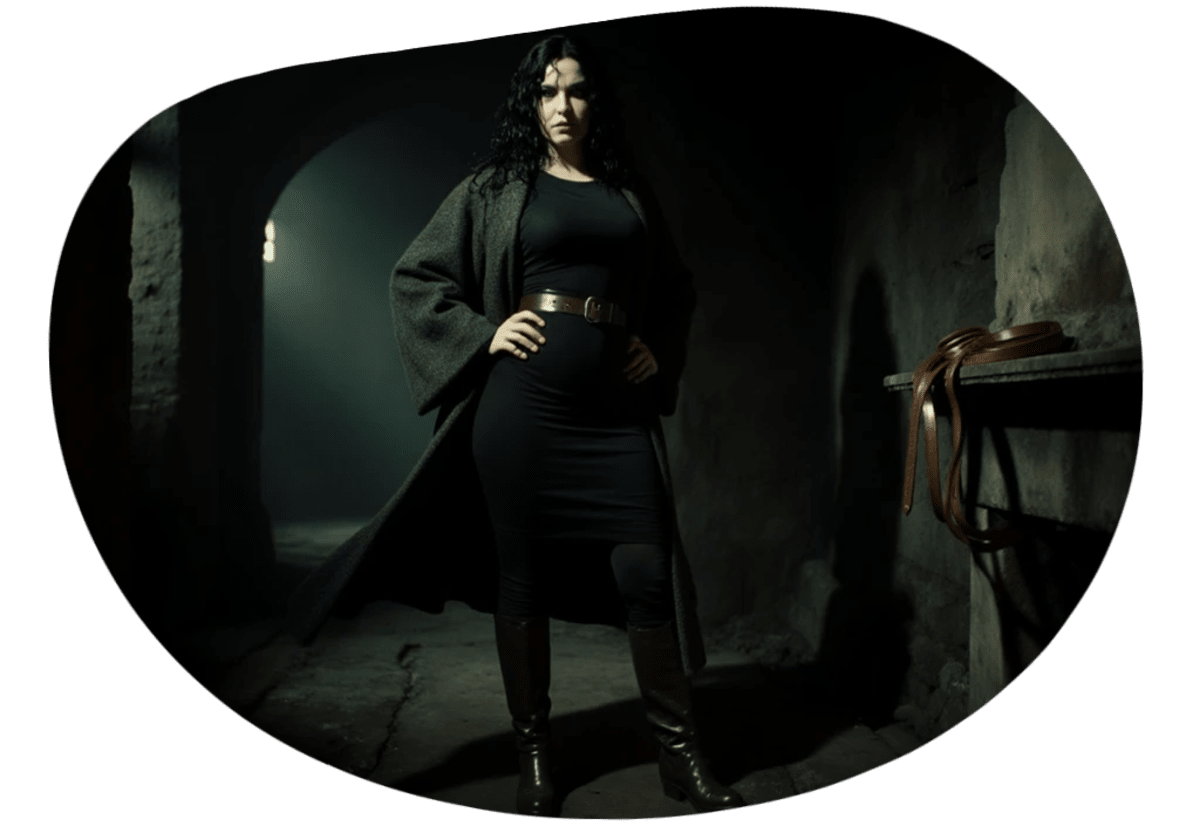 His hand dropped from her face, his fingers wrapping around her wrist with just enough pressure to make her gasp. The belt brushed against her hip as he turned, guiding her toward the hallway, his steps unhurried, his grip unyielding. She followed, her pulse a frantic drumbeat in her ears, her skin hyperaware of every place they touched—the rough callouses of his palm against the inside of her wrist, the occasional graze of the belt’s tail against her thigh, the warmth of his body radiating into hers like a brand.